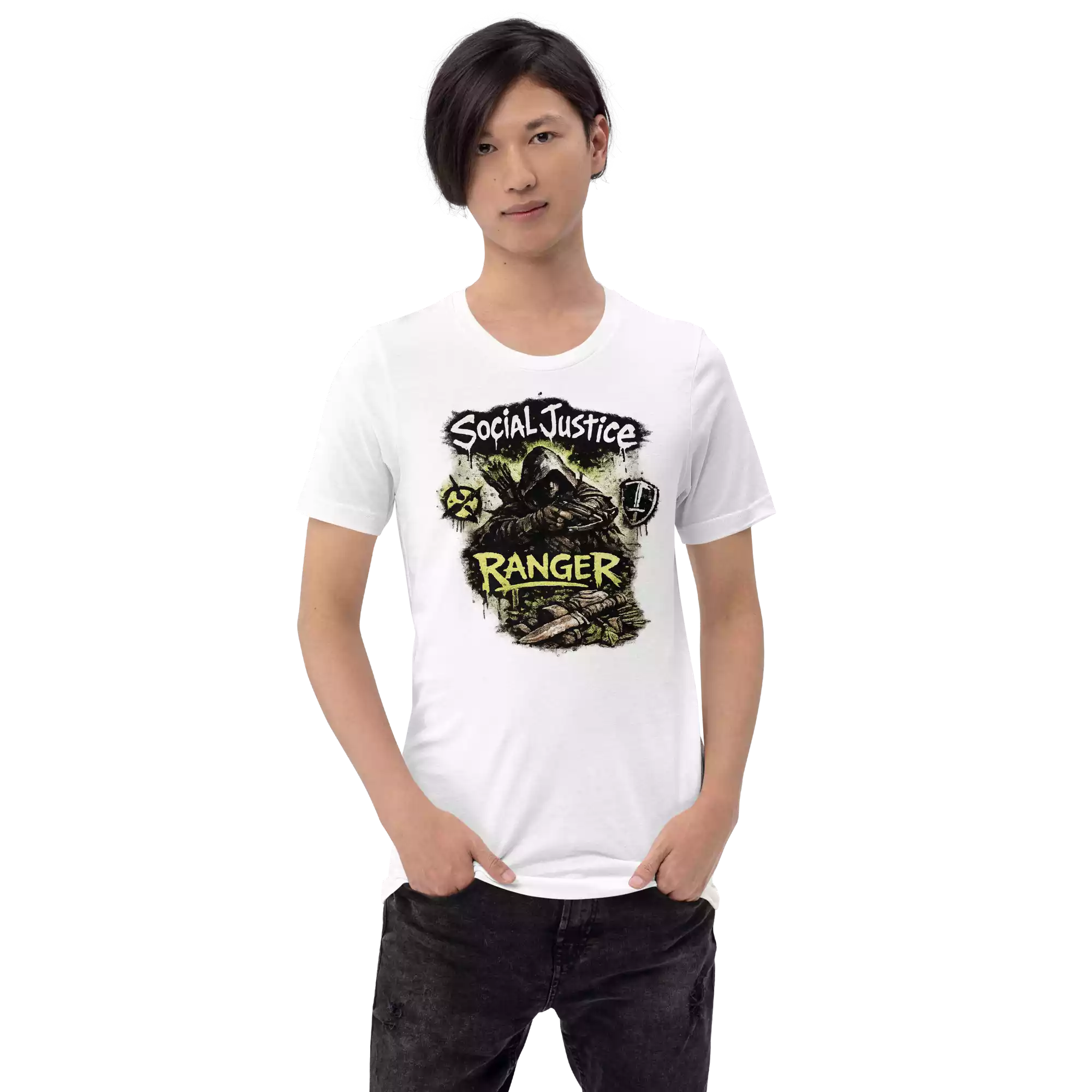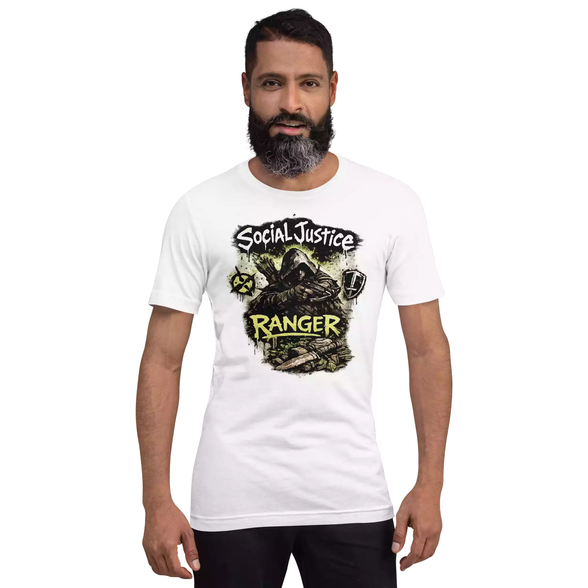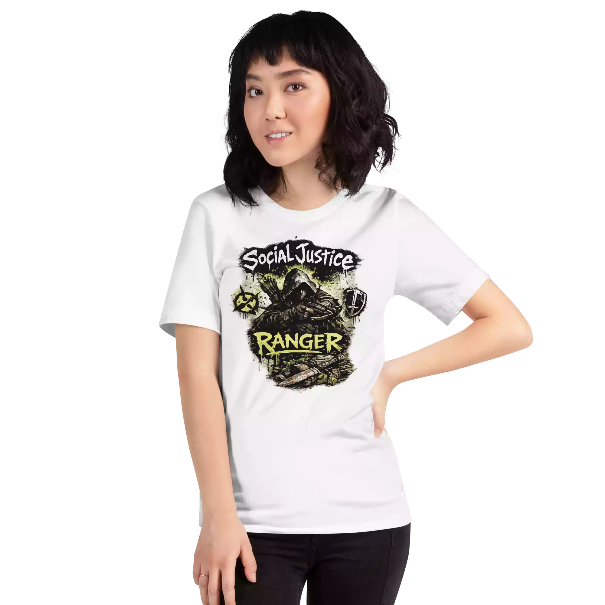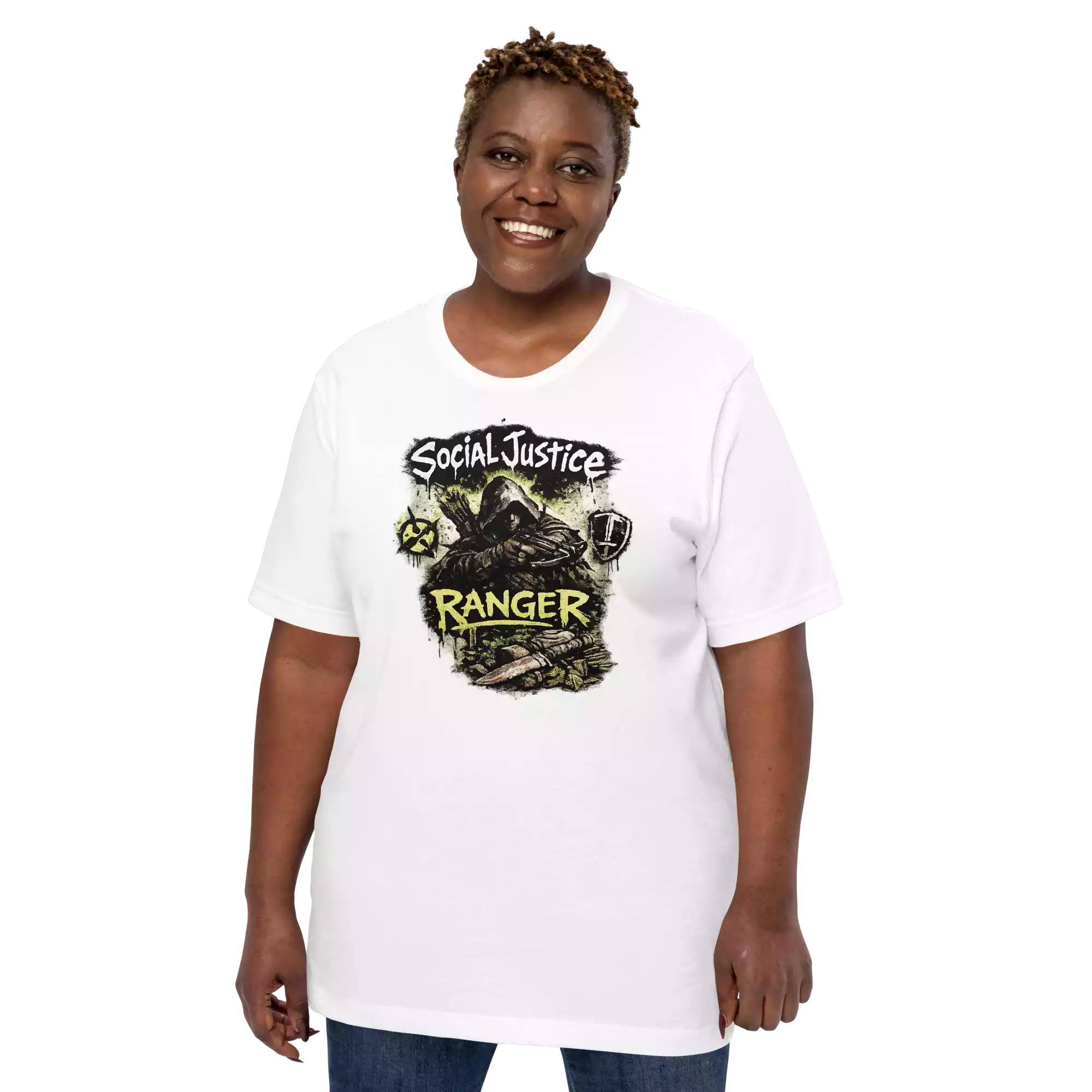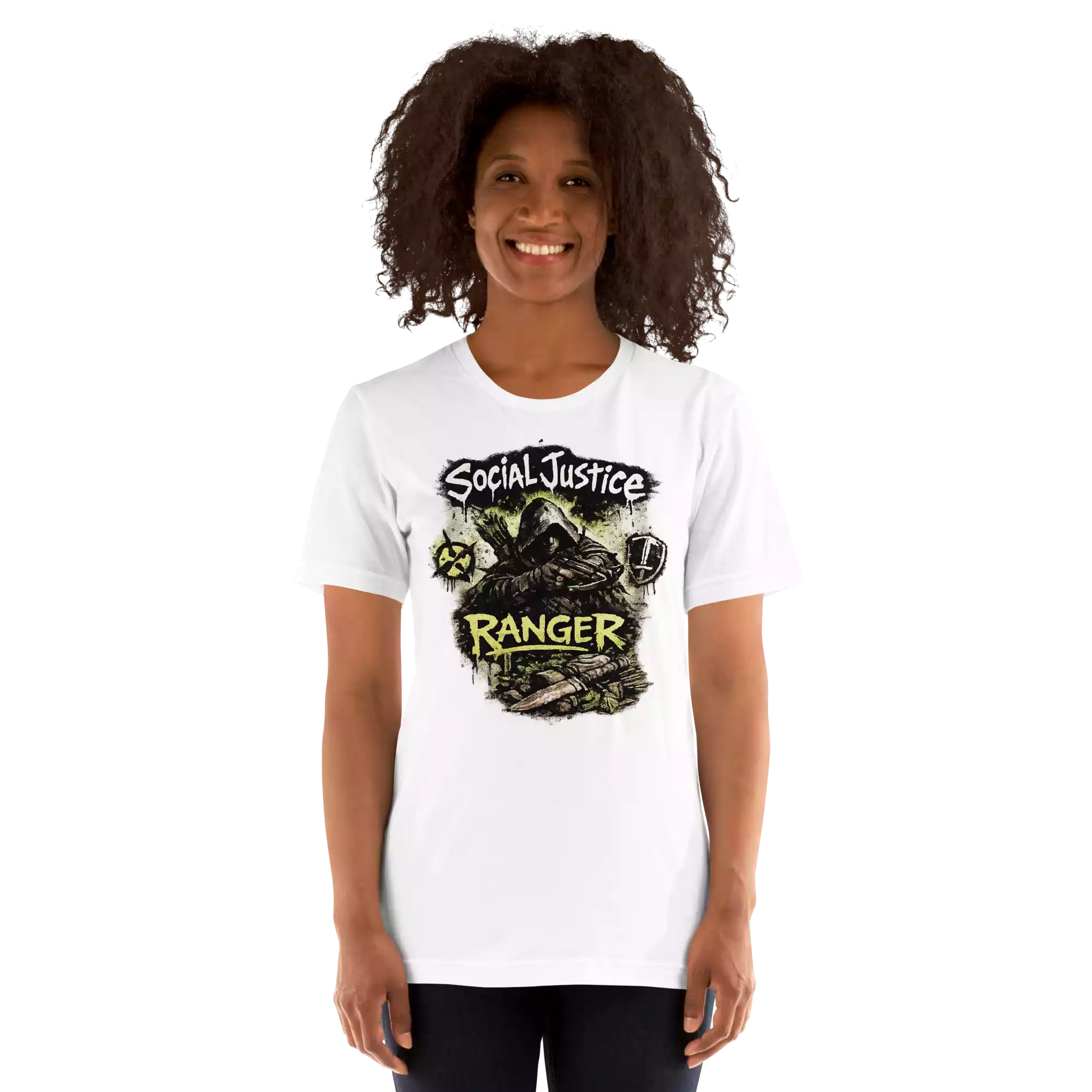 The Social Justice Ranger tee represents journalists and citizen reporters on the edges of the movement. Soft, lightweight, and comfortable, it’s made for those who document, review, and expose the truth with precision.